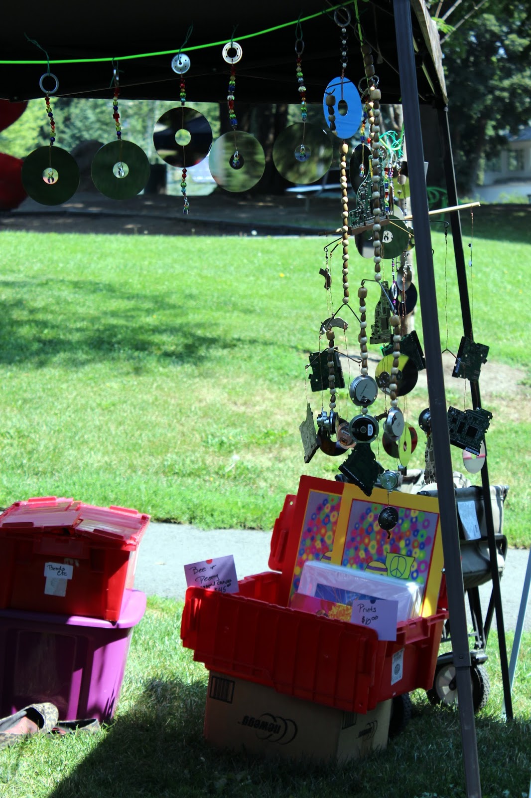 All in all, I had a blast. Do need to figure out better ways to display my jewelry. Need to haunt the thrift shops for stands to hang things off of. Can't wait for next year. Have to see about getting a canopy of my own. Discovered they come in purple!!!!!!!!!